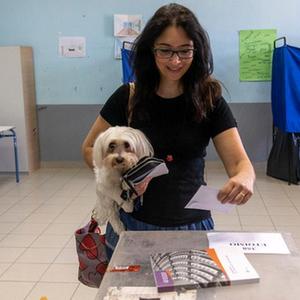 6月25日,希臘新民主黨主席基里亞科斯·米佐塔基斯在雅典一處投票站參加投票。