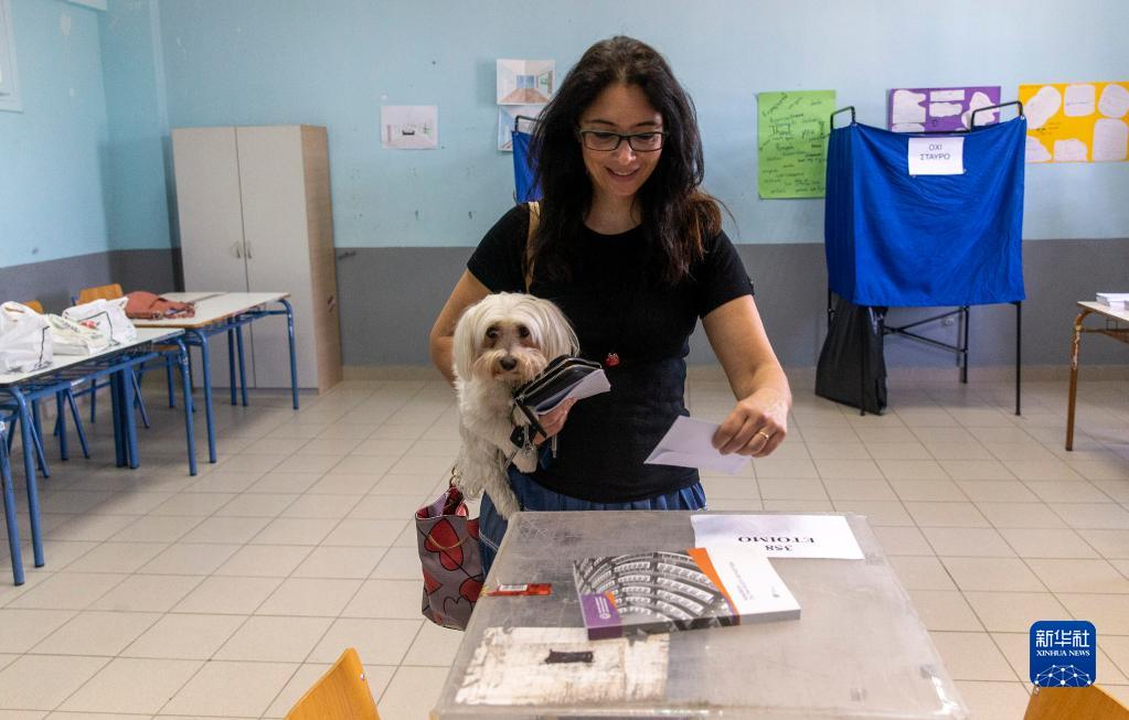 6月25日,一名女子在希臘雅典一處投票進(jìn)行投票。