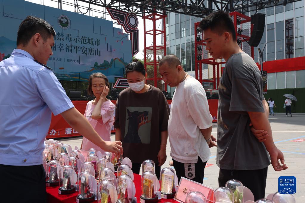 6月26日,民警在河北省唐山市為市民普及常見(jiàn)的毒品及危害。