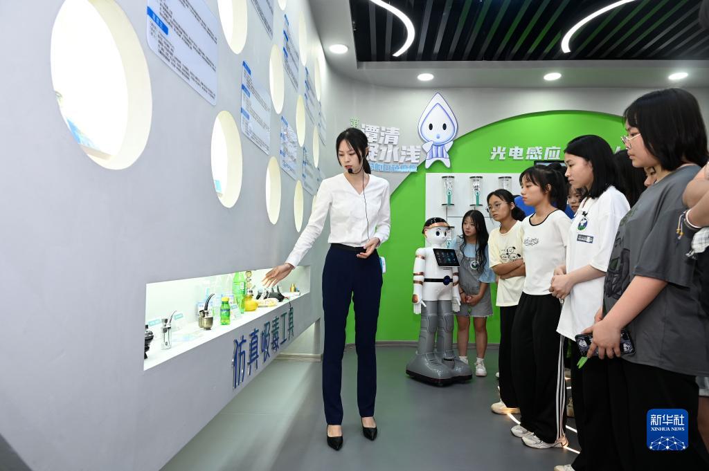 6月26日,在四川省內江市東興區禁毒教育基地,工作人員向學(xué)生講解禁毒知識。