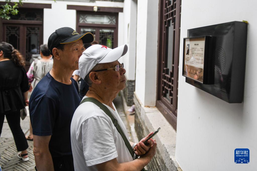 6月25日,游客在濟南百花洲景區內參觀(guān)一處紅色打卡點(diǎn)。