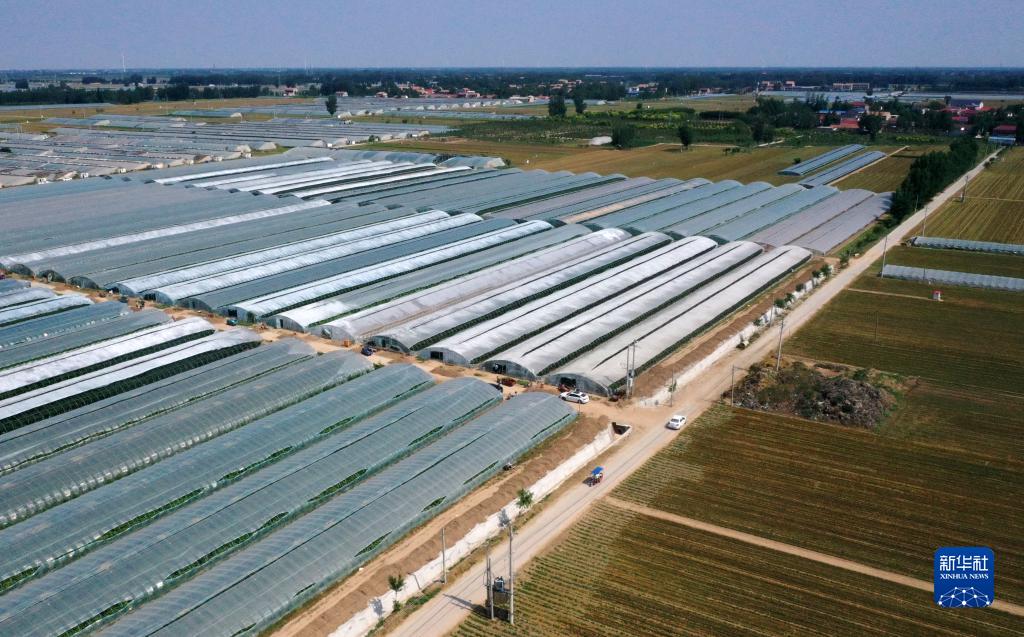 6月26日拍攝的河南省安陽(yáng)市內黃縣梁莊鎮馮莊村的辣椒種植大棚(無(wú)人機照片)。