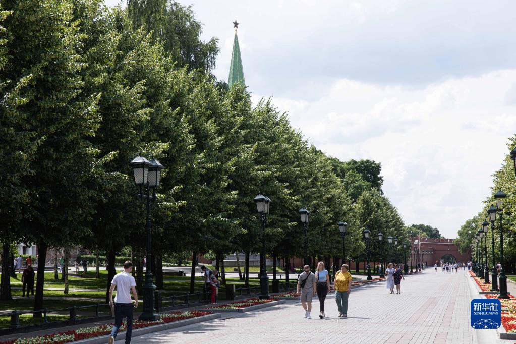6月26日,在俄羅斯首都莫斯科,人們在紅場(chǎng)附近游覽。