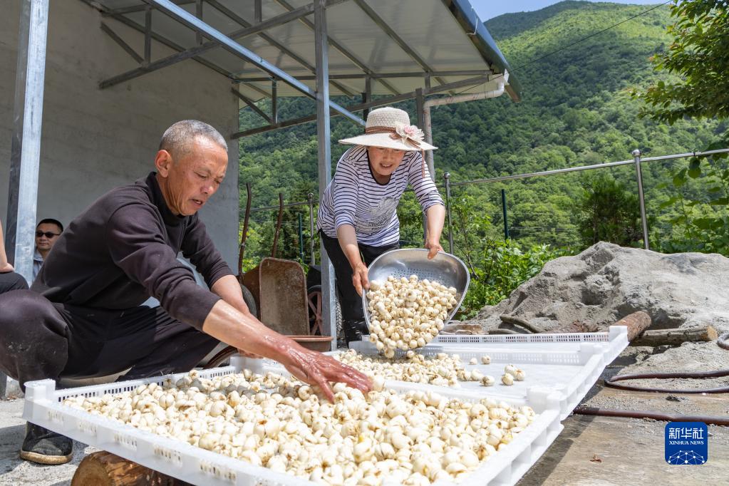 6月26日,在重慶市巫溪縣蘭英鄉西安村,村民將清洗干凈的貝母攤開(kāi)晾干。