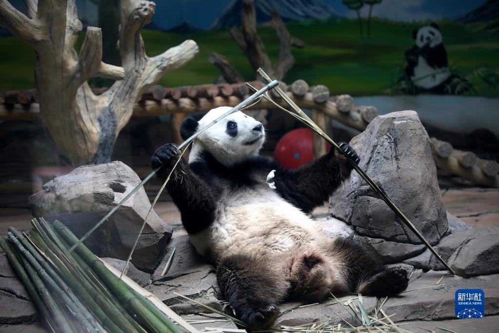 近日,遼寧地區持續高溫,在飼養員的精心照料下,鞍山動(dòng)物園里的5歲大熊貓“剛剛”一邊吹著(zhù)空調降溫,一邊享用新鮮竹子、水果、胡蘿卜、蜂蜜等,清涼度夏。