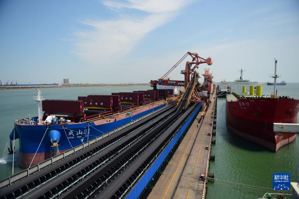 6月27日,船舶在黃驊港煤炭港區裝運電煤。