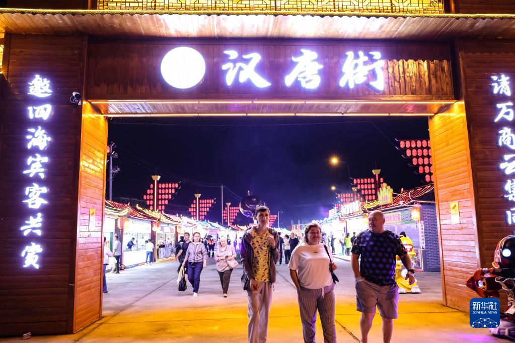 6月27日,俄羅斯游客在琿春市漢唐街夜市逛街。