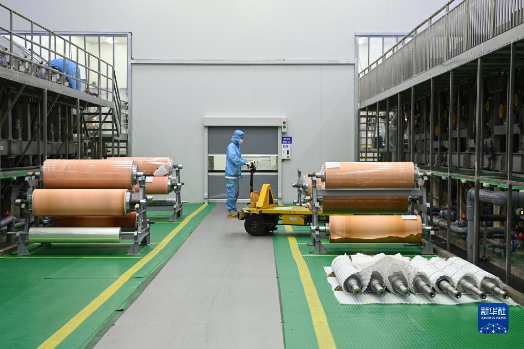6月27日,工人在金川集團銅業(yè)有限公司年產(chǎn)3萬(wàn)噸新能源電子材料銅箔項目生產(chǎn)車(chē)間作業(yè)。