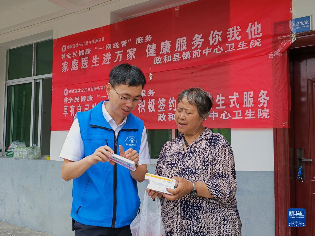 6月27日,在福建省政和縣鎮前鎮西溪村,醫務(wù)人員向村民講解用藥注意事項。