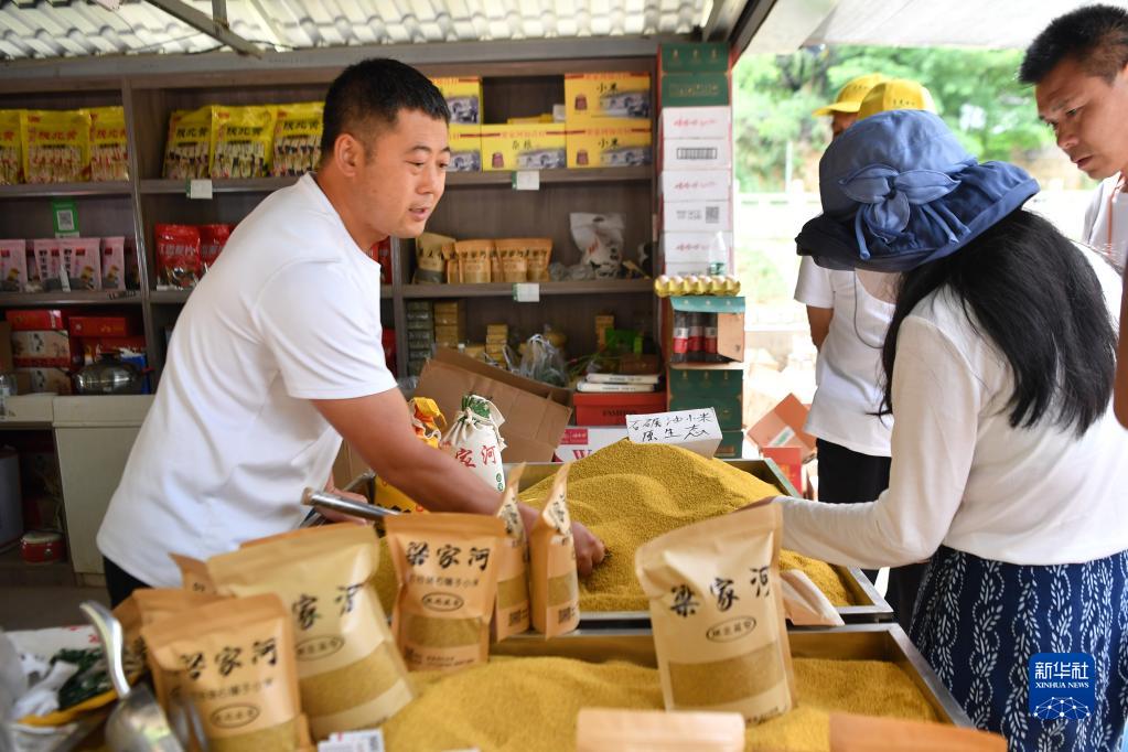 6月28日,游客在延安市延川縣文安驛鎮梁家河村選購農產(chǎn)品。