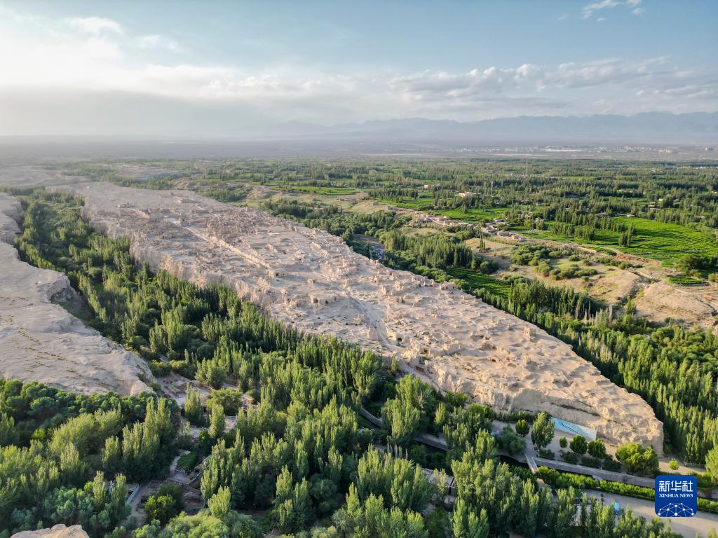 這是位于吐魯番市的交河故城景區(6月25日攝,無(wú)人機照片)。