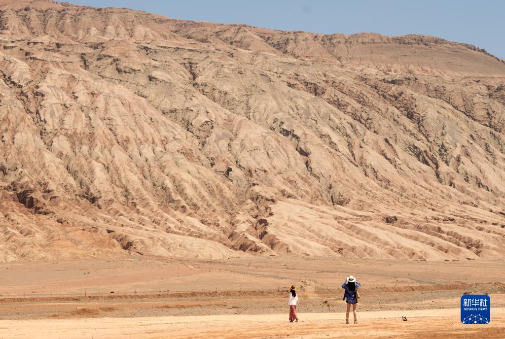 游客在位于吐魯番市的火焰山景區游覽(6月27日攝)。