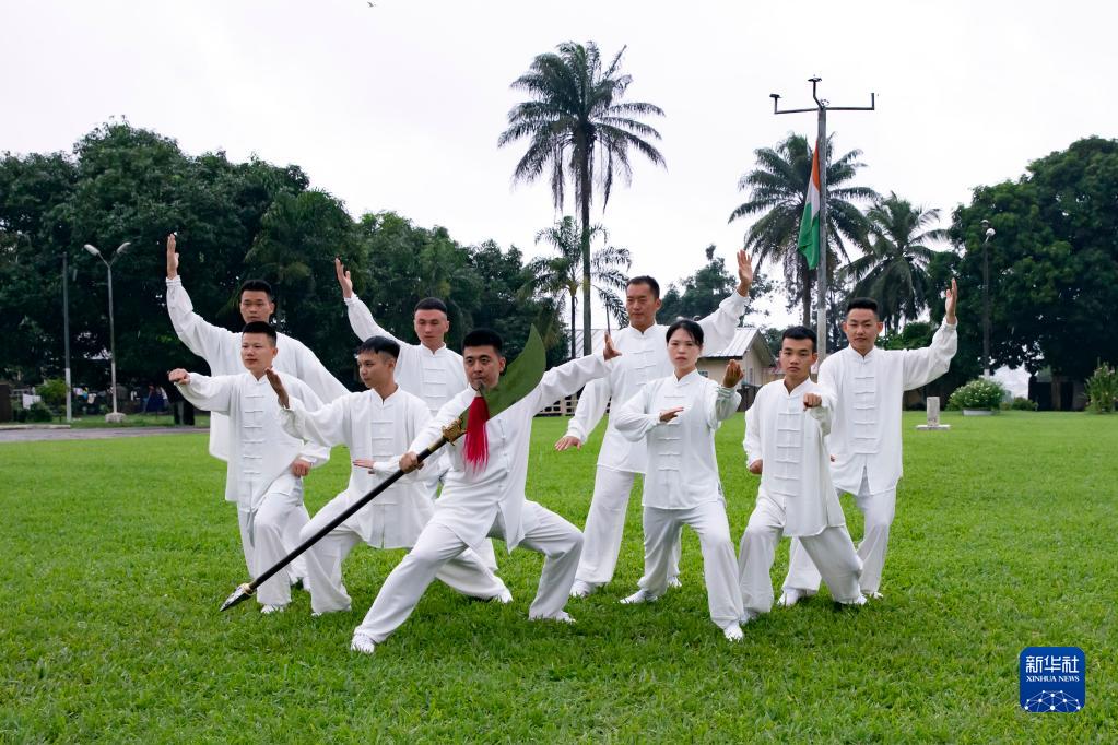 6月23日,中國海軍第43批護航編隊官兵在科特迪瓦班熱維爾孤兒院男校慰問(wèn)時(shí)進(jìn)行太極拳展演。