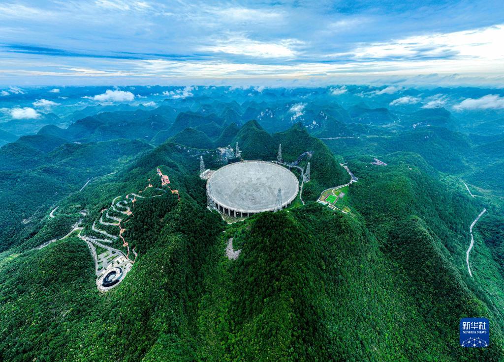 6月23日拍攝的“中國天眼”全景(維護保養期間拍攝,無(wú)人機照片)。
