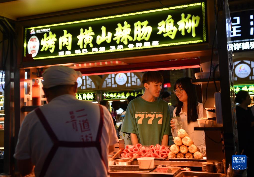 6月28日,游客在延安市延州二道街夜市購買(mǎi)小吃。