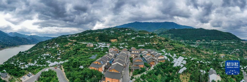 這是6月28日在重慶市巫山縣曲尺鄉柑園村拍攝的巫山脆李種植基地(無(wú)人機拼接照片)。