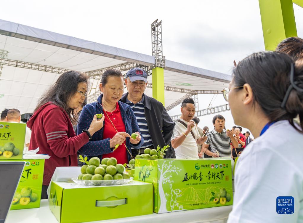 6月28日,在巫山脆李第七屆開(kāi)園節暨中國郵政航空“脆李航班”啟航儀式活動(dòng)現場(chǎng),嘉賓在品嘗巫山脆李。