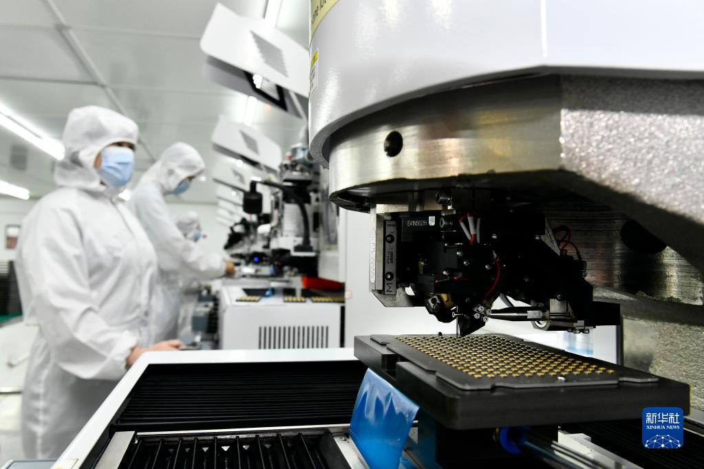 6月29日,在日照高新技術(shù)產(chǎn)業(yè)開(kāi)發(fā)區智慧微電產(chǎn)業(yè)園,工作人員在生產(chǎn)聲表產(chǎn)品。
