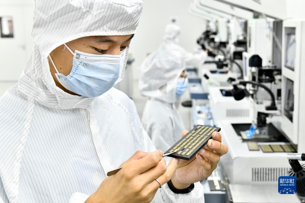 6月29日,在日照高新技術(shù)產(chǎn)業(yè)開(kāi)發(fā)區智慧微電產(chǎn)業(yè)園,工作人員在生產(chǎn)聲表產(chǎn)品。
