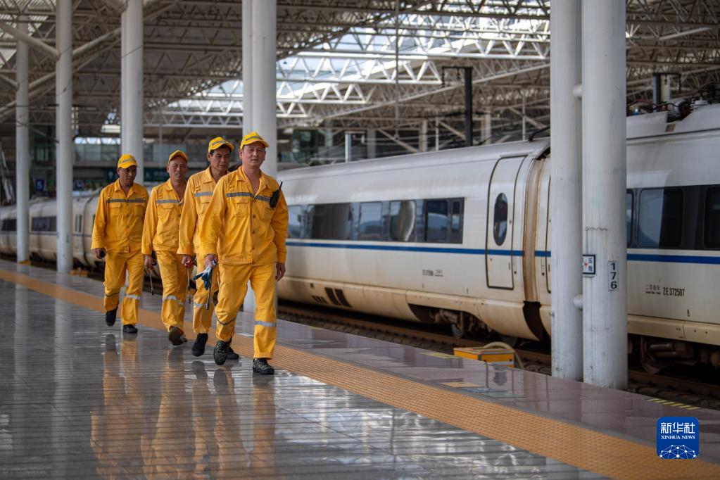 隨著(zhù)暑運臨近,鐵路杭州房建公寓段溫州保潔工區的上水卸污工人們愈發(fā)忙碌起來(lái)。每當高鐵??空九_時(shí),工人們拖著(zhù)水管,在車(chē)廂下方穿梭作業(yè),保障高鐵列車(chē)的運行與旅客的出行體驗。目前,溫州保潔工區每天要對100余趟往來(lái)的高鐵列車(chē)進(jìn)行上水卸污作業(yè),每趟作業(yè)都要沿著(zhù)近500米的站臺走一個(gè)來(lái)回,一天下來(lái),工人們行走的步數超過(guò)三萬(wàn)步。