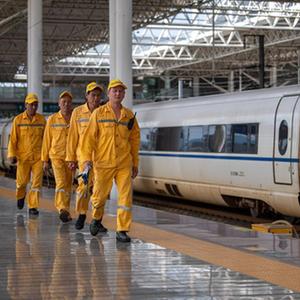 6月29日,溫州保潔工區的工人準備下站臺進(jìn)行上水卸污作業(yè)。