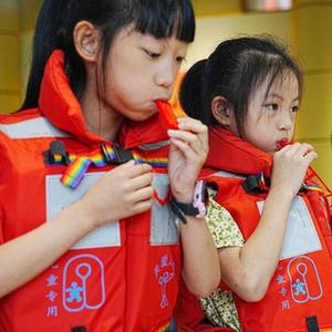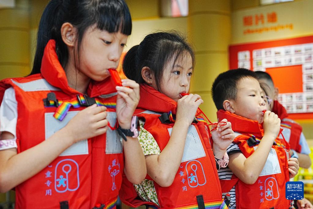 6月29日,在重慶市北碚區青少年活動(dòng)中心,孩子們在學(xué)習使用救生哨。