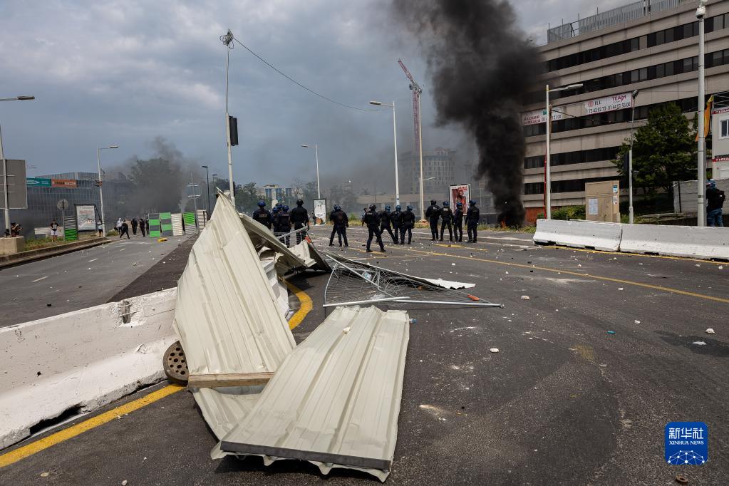 6月29日,在法國上塞納省楠泰爾市,示威者與警察發(fā)生沖突。