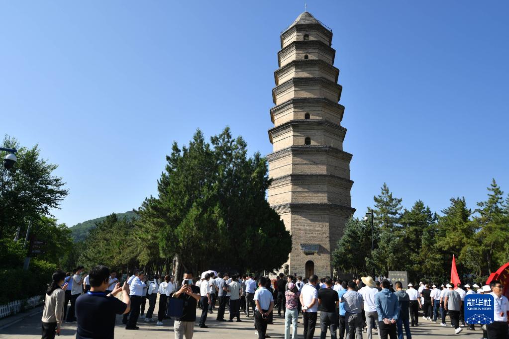6月30日,觀(guān)眾在延安寶塔山參觀(guān)。