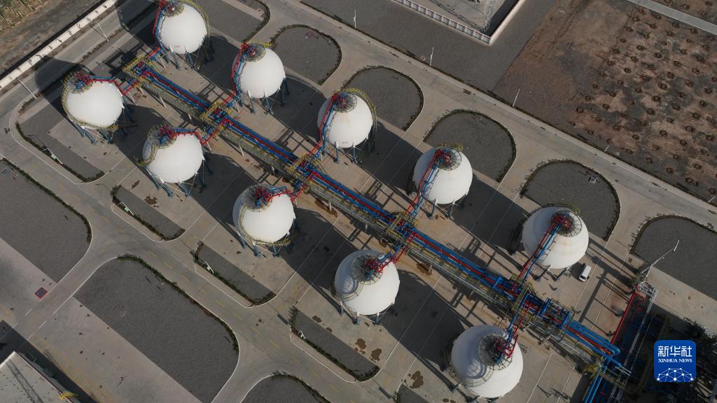 這是6月30日拍攝的中國石化新疆庫車(chē)綠氫示范項目制氫廠(chǎng)儲氫罐區(無(wú)人機照片)。