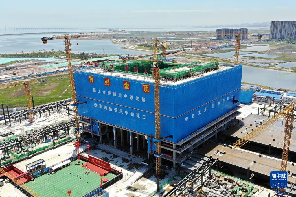建設中的上合大廈(6月30日攝,無(wú)人機照片)。
