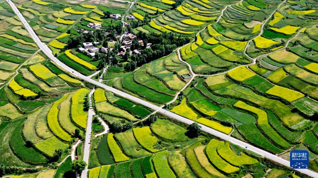 近日,甘肅省積石山保安族東鄉族撒拉族自治縣山鄉油菜花迎來(lái)盛花期。金色的油菜花扮美鄉村,景美如畫(huà)。