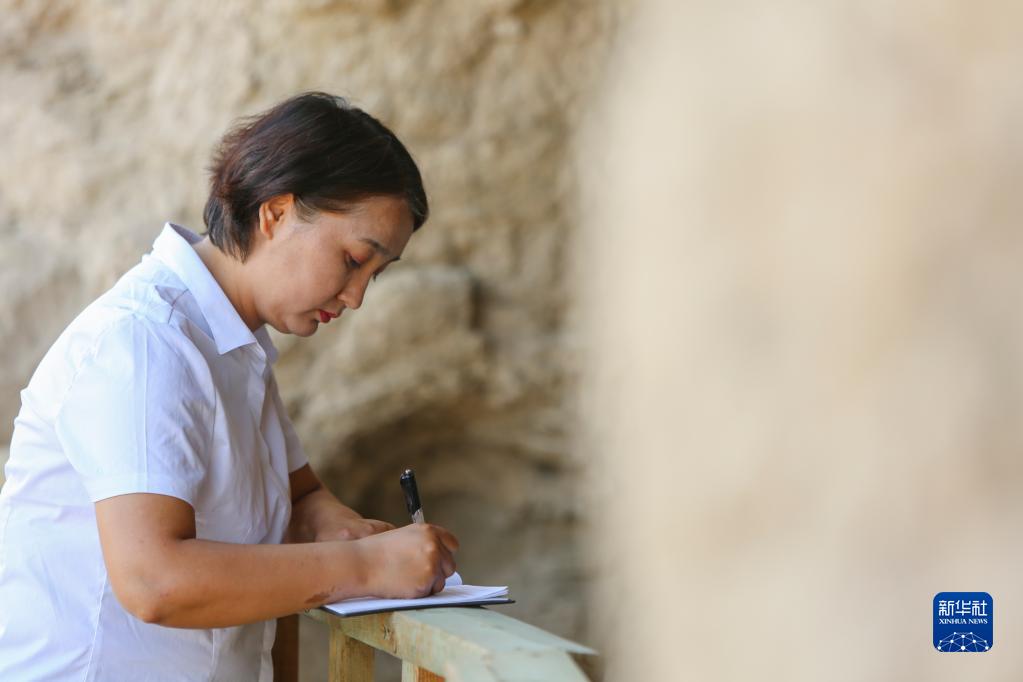 6月26日,古麗拜克熱·買(mǎi)明在交河故城內巡護時(shí)做記錄。
