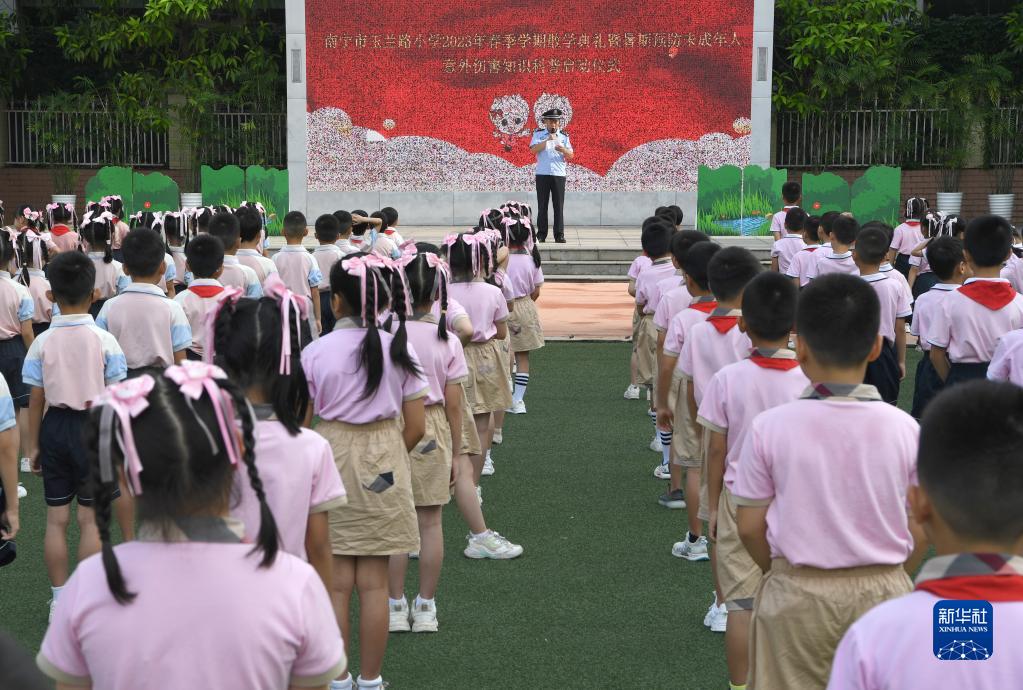 6月30日,民警在廣西南寧市玉蘭路小學(xué)科普暑期預防未成年人意外傷害知識。