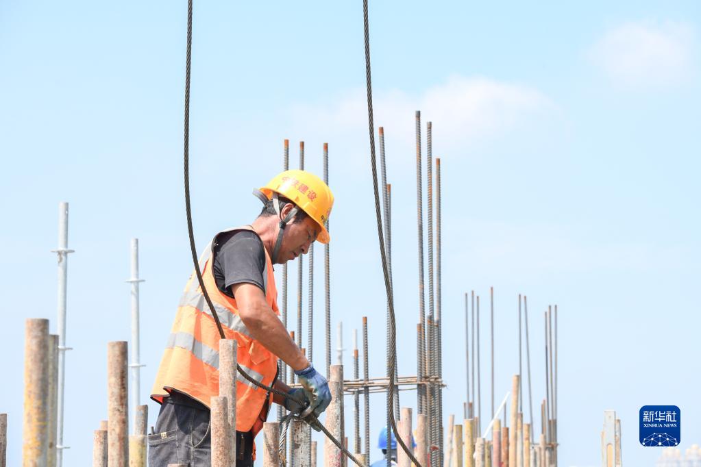6月30日,工人在鐵力站建設施工現場(chǎng)作業(yè)。
