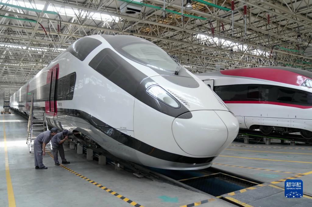 7月1日,河北省唐山市豐潤區中車(chē)唐山公司的工人在動(dòng)車(chē)組調試車(chē)間工作。