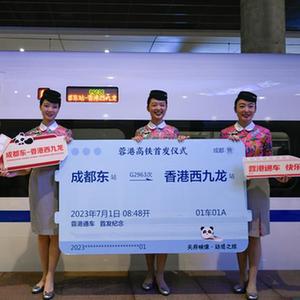 當日,鐵路部門(mén)首次開(kāi)行成都往返香港的直達高鐵,單程運行時(shí)間約10小時(shí)。