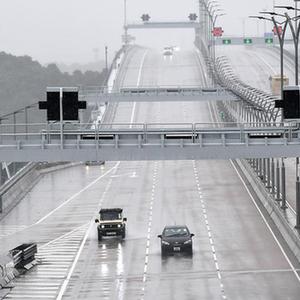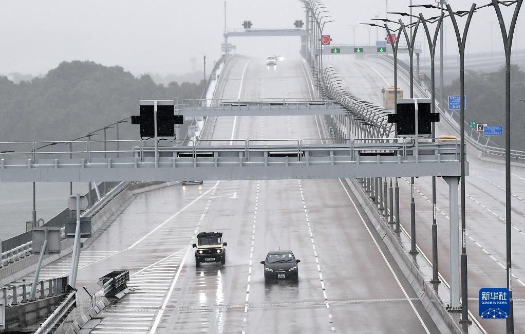7月1日,香港本地單牌車(chē)行駛在港珠澳大橋香港段。