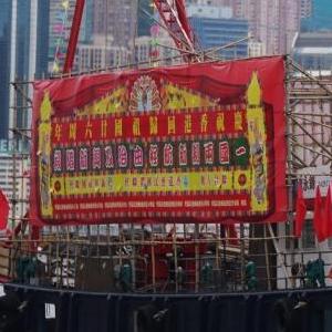 7月1日,市民在香港尖沙咀海濱和巡游的漁船互動(dòng)。