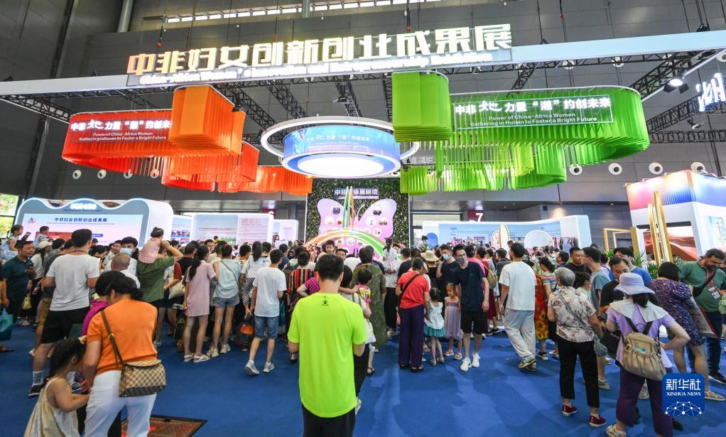 7月1日,觀(guān)眾在長(cháng)沙國際會(huì )展中心參觀(guān)中非婦女創(chuàng )新創(chuàng )業(yè)成果展。