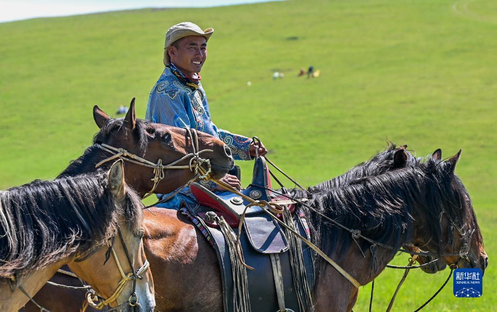 7月1日,一位牧民在開(kāi)幕式上進(jìn)行牧馬表演。