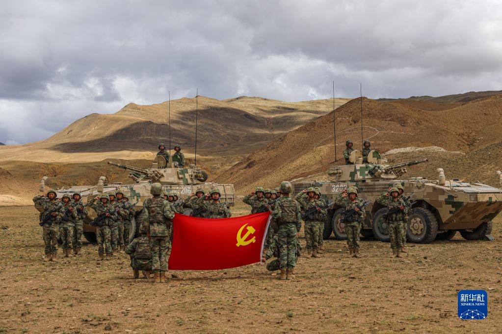第77集團軍“尊干愛(ài)兵模范連”官兵在雪域高原駐訓地開(kāi)展主題黨日活動(dòng)(6月29日攝)。