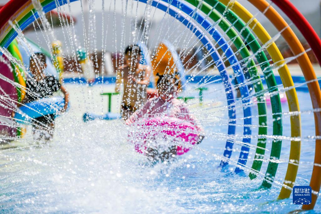 7月1日,小朋友在河北省遵化市娘娘莊鎮水上樂(lè )園戲水避暑。