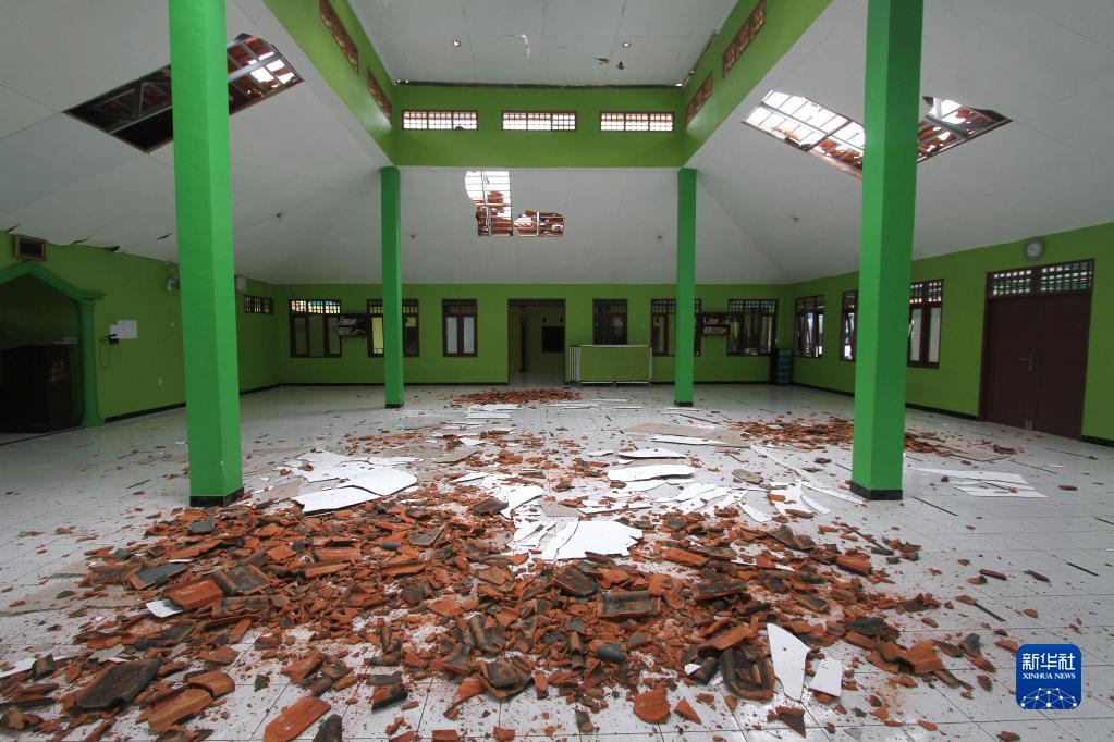 這是7月1日在臨近印度尼西亞日惹特區的中爪哇省普拉西曼托羅區拍攝的被地震破壞的校舍。