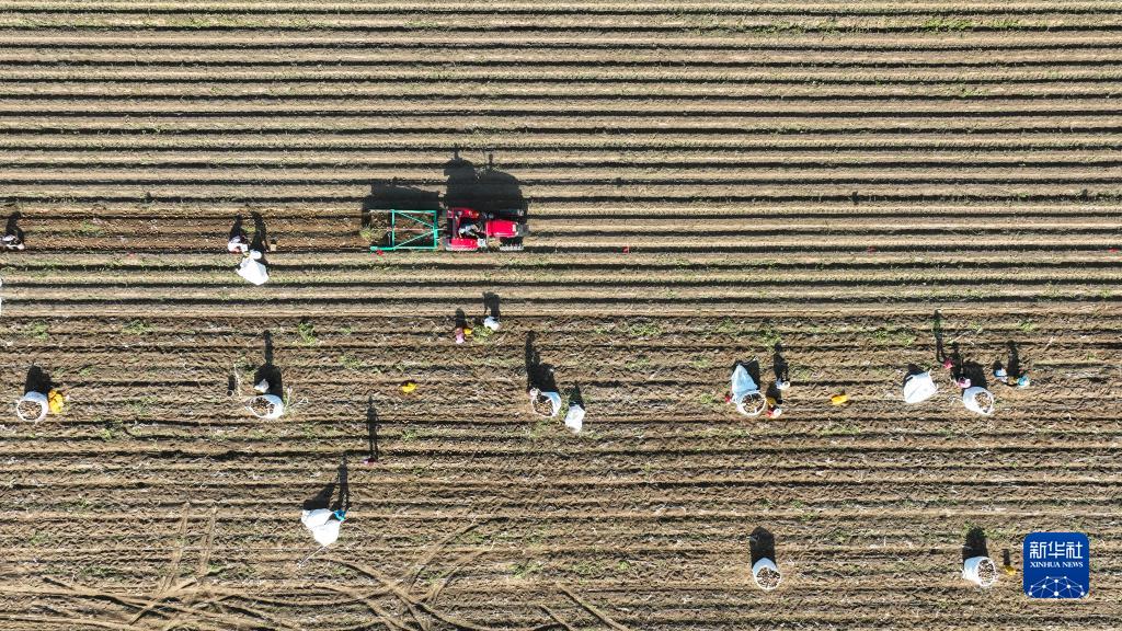 7月1日,河北省唐山市豐南區大新莊鎮大趙莊村農民在田間收獲馬鈴薯。