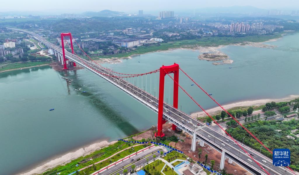 7月1日,車(chē)輛通行在四川瀘州長(cháng)江二橋上。
