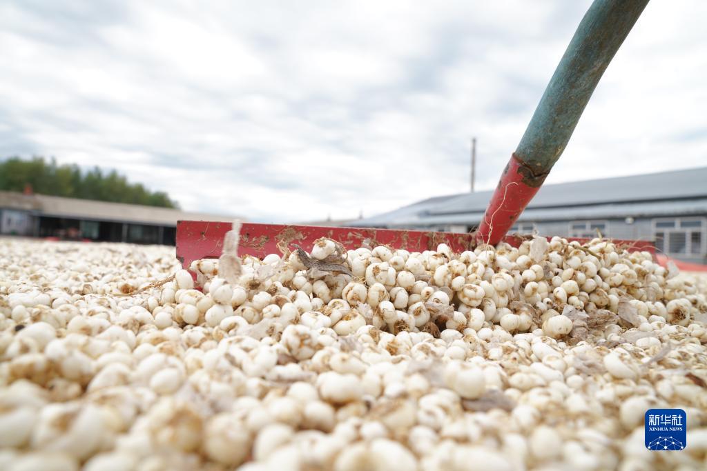 在滿(mǎn)江紅村的鐵力市裕盛平貝種植農民專(zhuān)業(yè)合作社,工人在晾曬平貝(7月1日攝)。