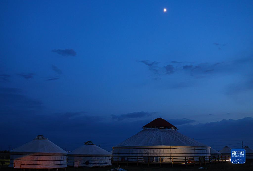 6月26日在呼倫貝爾市鄂溫克族自治旗拍攝的夜幕下的蒙古包。
