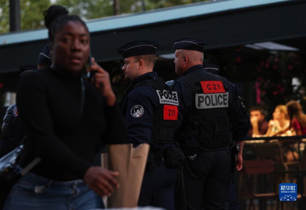 7月2日晚間,警察在法國巴黎香榭麗舍大道上巡邏。