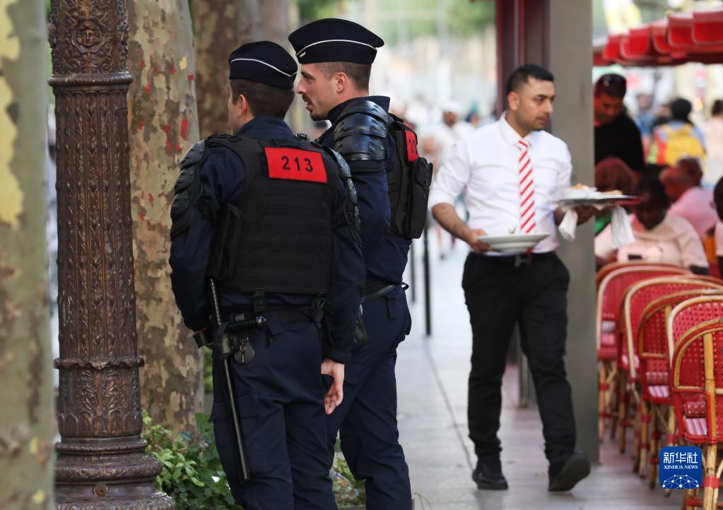 7月2日晚間,警察在法國巴黎香榭麗舍大道上巡邏。