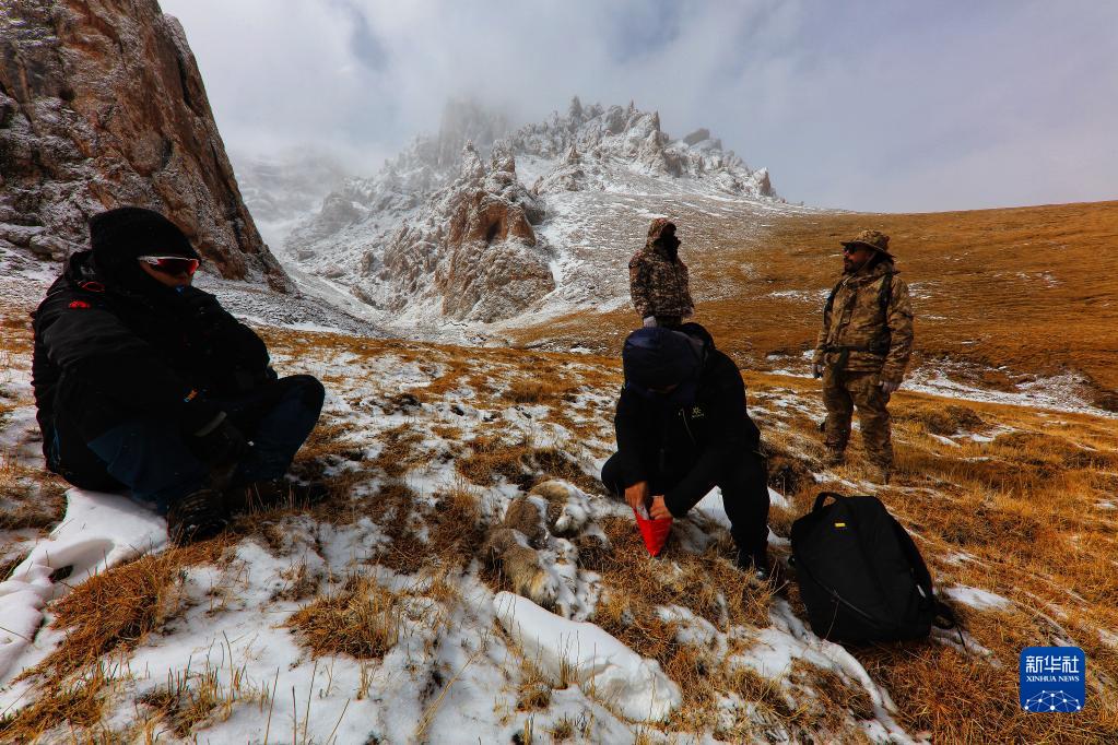 2019年3月,連新明(前右)和其他科研人員在三江源長(cháng)江源通天河開(kāi)展科學(xué)調查,采集樣本。